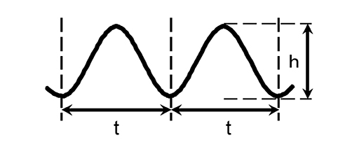 Die Wellenart wird durch die Wellenteilung (t) und die Wellenhöhe (h) bestimmt. Die Wellenteilung (t) beschreibt den Abstand zwischen zwei Wellenspitzen oder zwei Wellentälern, die Wellenhöhe (h) ist der Abstand vom Wellental zur Wellenspitze.